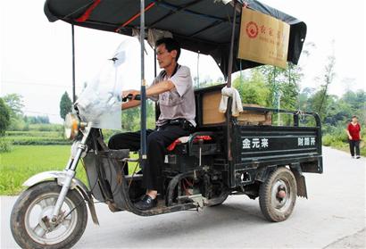 8月3日上午,华蓥市观音溪镇高坪村的张良贵刚吃过早饭,正准备到地里收拾庄稼,就碰见了骑着旧三轮赶来的“流动图书馆馆主”杨文招。